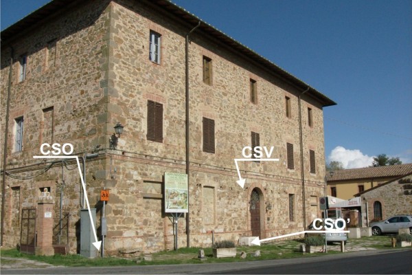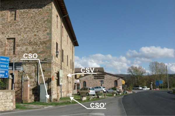 | Contrassegni | [{"simbolo_contrassegno":"B1","materializzazione":"(CSO) – Bullone infisso in prossimit\u00e0 dello spigolo sinistro dell'abitazione lungo la parete laterale."},{"simbolo_contrassegno":"P3","materializzazione":"(CSO') – Chiusino in ghisa posto a sinistra della porta d'ingresso. Il chiusino non \u00e8 stato ricognito perch\u00e8 coperto da una pesante fioriera in pietra."},{"simbolo_contrassegno":"V1","materializzazione":"(CSV) – Mensola posta a sinistra della porta d'ingresso dell'abitazione."}] |