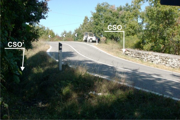 | Contrassegni | [{"simbolo_contrassegno":"P5","materializzazione":"(CSO) -Pozzetto rialzato con tubo in pvc e protetto da coperchio in ghisa, posto in prossimit\u00e0 dell'inizio del parapetto , lato valle."},{"simbolo_contrassegno":"B1","materializzazione":"(CSO') – Bullone infisso su pozzetto raccolta acque, lato opposto al CSO."}] |