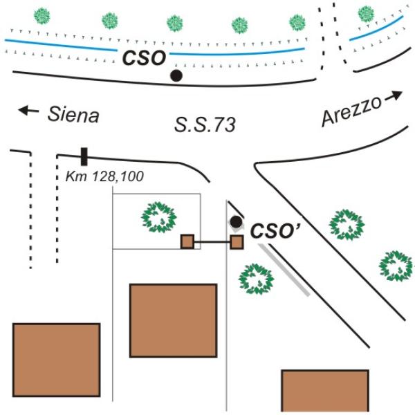 [{"simbolo_contrassegno":"P5","materializzazione":"(CSO) – Pozzetto rialzato con tubo in PVC e protetto da coperchio in ghisa, posto alla base posteriore del cippo di confine tra i comuni di Monte S.Savino e Badia al Pino."},{"simbolo_contrassegno":"B4","materializzazione":"(CSO') – Centrino universale posto sul basamento di un pozzetto del' acquedotto, situato di fianco al muro di accesso di un caseggiato."}]