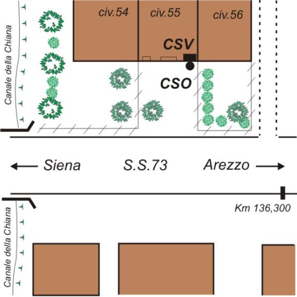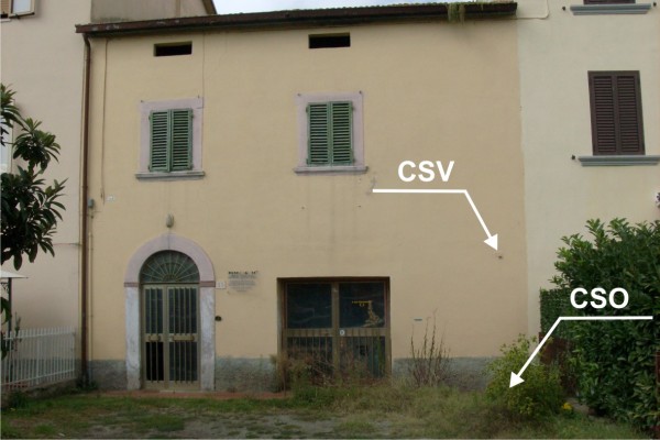 [{"simbolo_contrassegno":"P3","materializzazione":"(CSO) – Chiusino in ghisa posto a destra della base della facciata del civico 55. A non misurabile perch\u00e8 coperto da pavimentazione."},{"simbolo_contrassegno":"V1","materializzazione":"(CSV) – Mensola infissa sulla facciata, in corrispondenza del CSO."}]