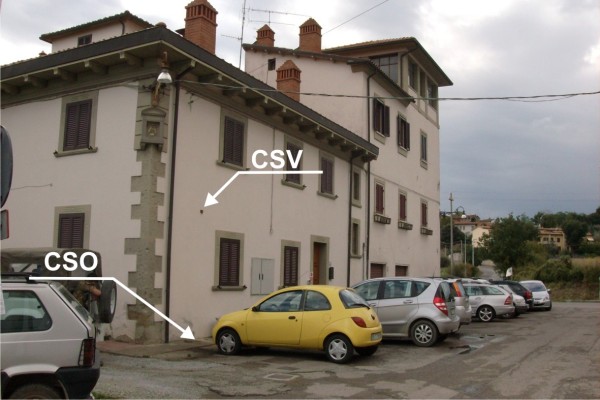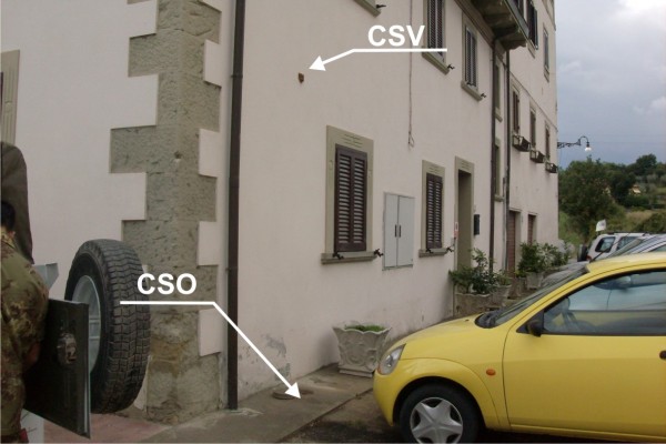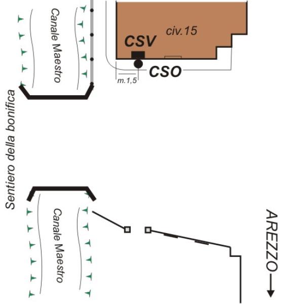 [{"simbolo_contrassegno":"P3","materializzazione":"(CSO) -Chiusuno in ghisa posto presso lo spigolo di sinistra della facciata del civico 15. Alto non misurabile perch\u00e8 coperto da pavimentazione."},{"simbolo_contrassegno":"V1","materializzazione":"(CSV) – Mensola infissa sulla stessa parete, in corrispondenza del CSO."}]