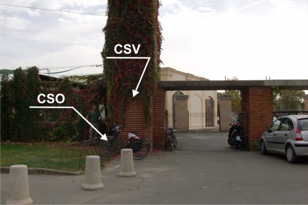 [{"simbolo_contrassegno":"P3","materializzazione":"(CSO) – Chiusino in ghisa rialzato con pozzetto in cemento quadrato 40×40 anonimo, posto sulla sinistra della torre d'accesso al parcheggio dipendenti della Banca Etruria."},{"simbolo_contrassegno":"V1","materializzazione":"(CSV) – Mensola posta sulla facciata della suddetta torre."}]