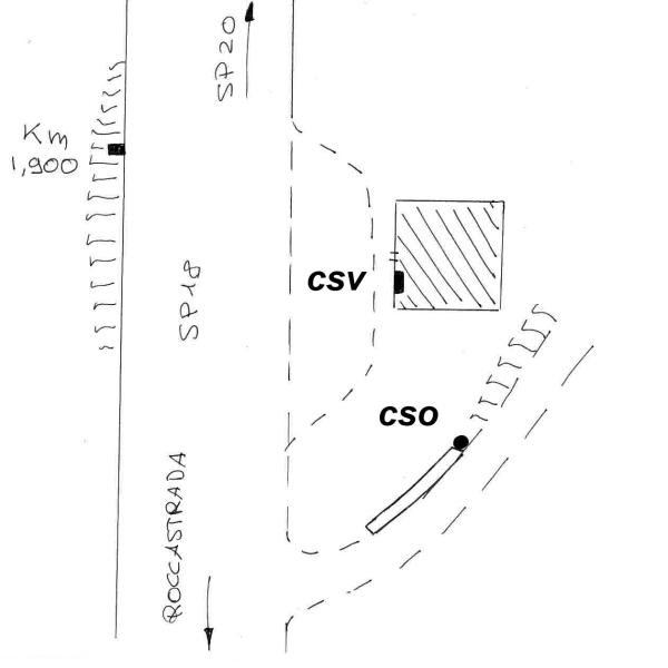 [{"simbolo_contrassegno":"B1","materializzazione":"(CSO) – Bullone infisso sulla testa del muro di sostegno di un bivio, lato opposto alla strada, nei pressi di un casotto dell' Amministr. Prov. di Siena, a destra verso la SP 20."},{"simbolo_contrassegno":"V6","materializzazione":"(CSV) – Piastrina infissa sulla facciata del medesimo casotto, a destra della porta d'ingresso."}]