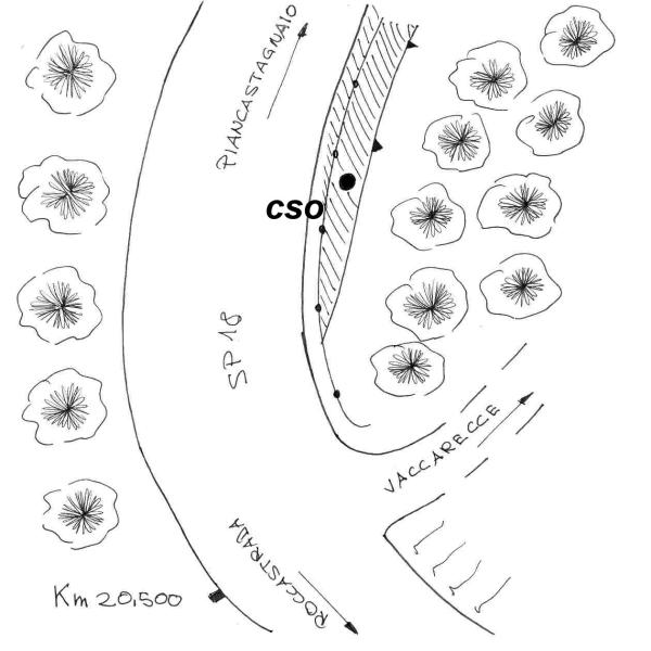 [{"simbolo_contrassegno":"B4","materializzazione":"(CSO) – Centrino infisso sulla sommit\u00e0 del muro di contenimento con guard-rail, posto sulla destra, appena oltrepassato il bivio per vaccarecce, procedendo in direzione Piancastagnaio."}]