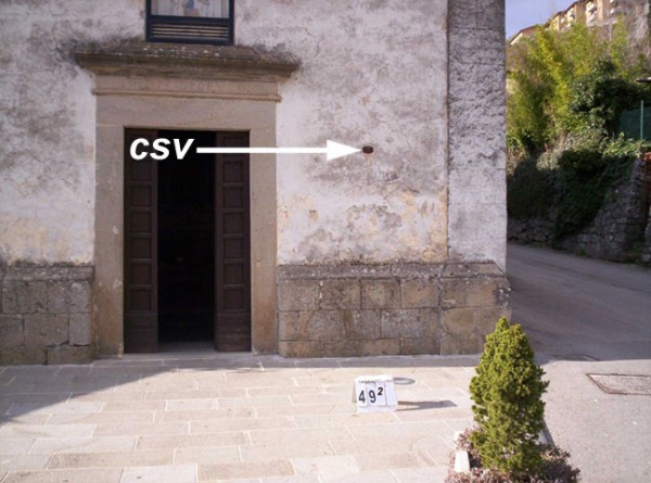 | Contrassegni | [{"simbolo_contrassegno":"B2","materializzazione":"(CSO) – Chiodo anonimo infisso sul marciapiede a destra della fontana – vasca e di fronte alla vaschetta con i quattro beccucci a circa 25 m. dal CSV."},{"simbolo_contrassegno":"B8","materializzazione":"(CSO') – Targa di marmo riportante la dicitura \"M. 646,19 sul mare\" murata orizzontalmente alla sommit\u00e0 della spalletta del muro di sostegno che delimita la sorgente Santa Fiora, nell'interno del giardino, sulla sinistra dopo la porta di accesso."},{"simbolo_contrassegno":"V3","materializzazione":"(CSV) – Piastrina antica infissa presso lo spigolo destro della facciata della chiesetta \"Madonna della Neve\"."},{"simbolo_contrassegno":"V5","materializzazione":"(CSV') – Targa di marmo con linea incisa, riportante la dicitura \"646,82\", fissata allo spigolo destro della parete a sinistra del casotto nell'interno del giardino, di fronte, appena a sinistra, dopo la porta di accesso."}] |