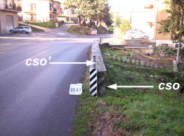 | Contrassegni | [{"simbolo_contrassegno":"B1","materializzazione":"(CSO) – Bullone infisso all'esterno della spalletta di un ponte nei pressi dell'Elettrauto al n\u00b0 civ. 19 di via Pieferi, a sinistra della strada verso il centro di Arcidosso."},{"simbolo_contrassegno":"B2","materializzazione":"(CSO') – Chiodo di altro ente infisso sulla sommit\u00e0 della medesima spalletta in pietra."}] |