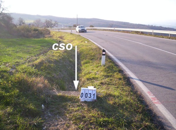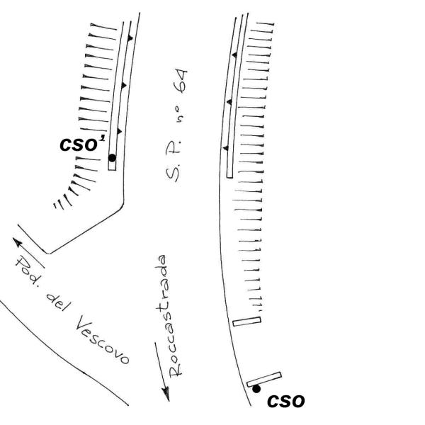 | Contrassegni | [{"simbolo_contrassegno":"B1","materializzazione":"(CSO) – Bullon infisso sulla spalla di un ponticello difronte al bivio per \"pod. del Vescovo\", a destra della provinciale, dopo l'incrocio per Monticello – Cinigiano, proveniendo da Roccastrada."},{"simbolo_contrassegno":"B4","materializzazione":"(CSO') – Centrino universale infisso sulla sommit\u00e0 e all'inizio del muretto di contenimento, sul lato opposto della strada, appena oltrepassato il bivio per podere del Vescovo."}] |