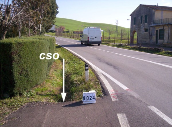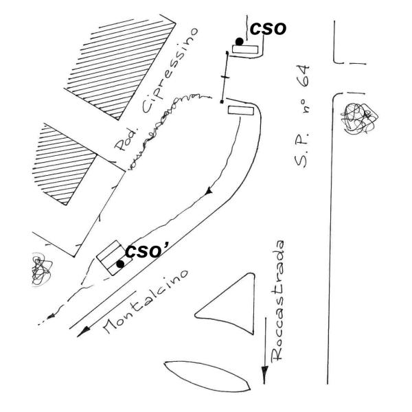 | Contrassegni | [{"simbolo_contrassegno":"B1","materializzazione":"(CSO) – Bullone infisso sulla spalla del ponticello di ingresso al pod. \"Cipressino\" oltrepassato lo svincolo per Montalcino – S. Angelo, sulla sinistra procedendo per Arcidosso."},{"simbolo_contrassegno":"B4","materializzazione":"(CSO') – Centrino infisso sulla sommit\u00e0 di un muro di tombino raccogliacque, sulla destra, appena imboccato lo svincolo per Montalcino, provenendo da Arcidosso."}] |