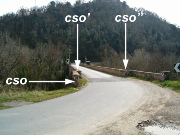 | Contrassegni | [{"simbolo_contrassegno":"B6","materializzazione":"(CSO) – Centrino del tipo \"GPS C\" infisso nel basamento in pietra all'estremit\u00e0 Nord – Est della spalletta a monte del ponte sul fiume Ombrone, riva destra."},{"simbolo_contrassegno":"B2","materializzazione":"(CSO') – Chiodo anonimo di altro ente infisso sulla sommit\u00e0 della balaustra del ponte, nella risega di sinistra, prima dell'attraversaento in direzione Sasso D'Ombrone, a circa 8 m. dal CSO."},{"simbolo_contrassegno":"B2","materializzazione":"(CSO'') – Chiodo anonimo di altro ente infisso sulla sommit\u00e0 della balaustra del ponte, nella risega di destra, prima dell'attraversamento in direzione Sasso D'Ombrone, a circa 10 m. dal CSO."}] |