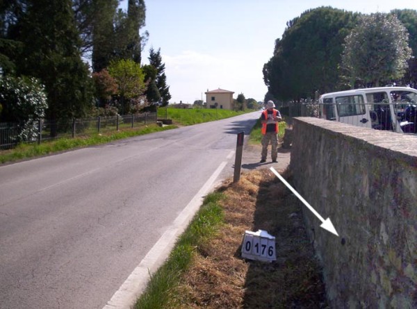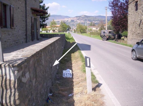 | Contrassegni | [{"simbolo_contrassegno":"B1","materializzazione":"(CSO) – Bullone infisso su muro di sostegno in pietra, sulla sinistra andando verso Cortona, della casa Cilestro n\u00b0 civ. 938"}] |