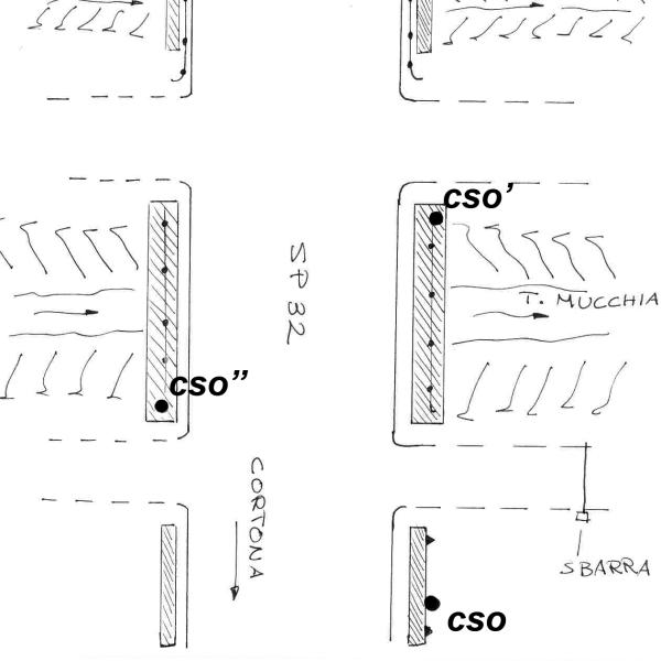 [{"simbolo_contrassegno":"B1","materializzazione":"(CSO) – Bullone infisso nel muro di sostegno sulla sinistra andando verso Cortona, subito dopo il ponte sul torrente Mucchia."},{"simbolo_contrassegno":"B4","materializzazione":"(CSO') – Centrino dell' Ufficio Idrografico di Pisa (n\u00b070.1) infisso sulla sommit\u00e0 della trave a valle lato SS n1 del ponte."},{"simbolo_contrassegno":"B4","materializzazione":"(CSO'') – Centrino Ufficio Idrografico di Pisa (n\u00b070.3) infisso sulla sommit\u00e0 della trave a monte, lato Cortona, del medesimo ponte."}]