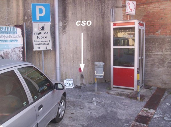 | Contrassegni | [{"simbolo_contrassegno":"B1","materializzazione":"(CSO) – Bullone infisso su muro di sostegno accanto alla cabina telefonica."},{"simbolo_contrassegno":"V6","materializzazione":"(CSV) – Piastrina con cilindretto infissa sul medesimo muro a circa 8 m. di distanza."}] |