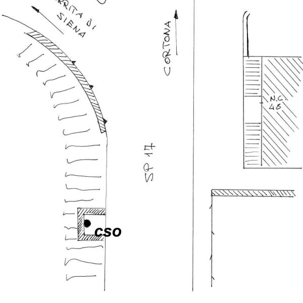 | Contrassegni | [{"simbolo_contrassegno":"B1","materializzazione":"(CSO) – Bullone infisso all'interno di un tombino raccogliacque sulla sinistra a circa 30 m. prima del bivio per Torrita di Siena, andando verso Cortona."}] |