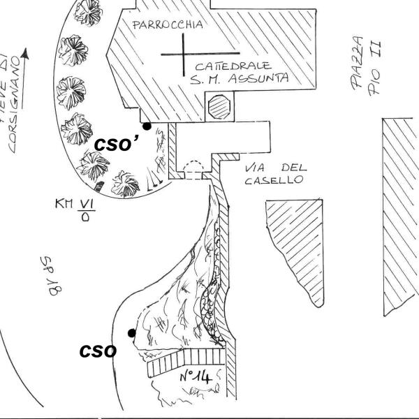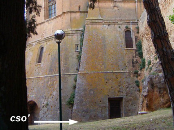 | Contrassegni | [{"simbolo_contrassegno":"B1","materializzazione":"(CSO) – Bullone di altro ente infisso nel costone arenitico prospicente la SP 18, all'altezza del km 0,600"},{"simbolo_contrassegno":"B1","materializzazione":"(CSO') – Bullone di altro ente infisso alla base del contrafforte sinistro posteriore, lato campanile, della parrocchia\/cattedrale di Pienza: Santa Maria Assunta."}] |