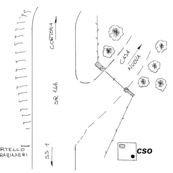 [{"simbolo_contrassegno":"B4","materializzazione":"(CSO) – Centrino universale infisso su platea di cemento di un tombino, situato oltre una rete di recinzione, sulla destra della strada, circa 30 m. prima dell'ingresso con cancello della casa, procedendo in direzione Cortona."}]