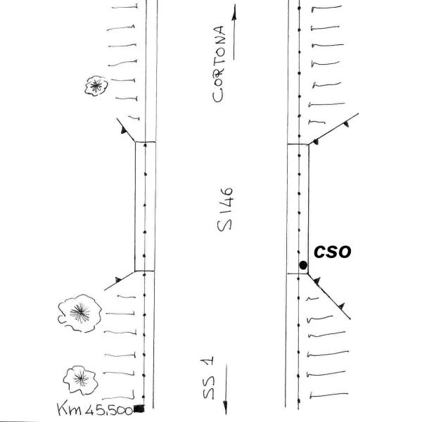 [{"simbolo_contrassegno":"B4","materializzazione":"(CSO) – Centrino universale infisso sulla estremit\u00e0 destra della trave del ponte, sul lato destro della strada andando verso Cortona."}]