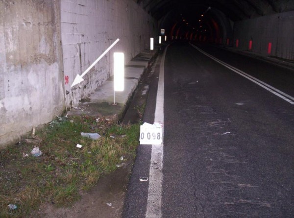 [{"simbolo_contrassegno":"B1","materializzazione":"(CSO) – Bullone infisso nella spalla destra dell'uscita dalla galleria venendo da Roma."}]