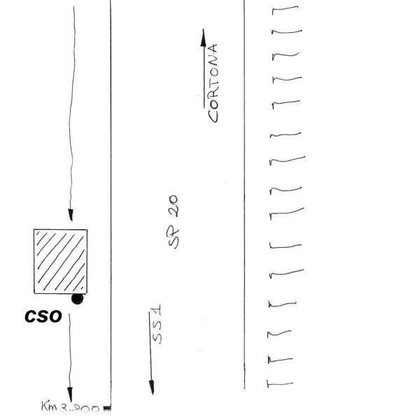 | Contrassegni | [{"simbolo_contrassegno":"B1","materializzazione":"(CSO) – Bullone infisso sul fianco di un tombino posto al km 3,780 della SP 20, sulla sinistra, procedendo in direzione Cortona."}] |