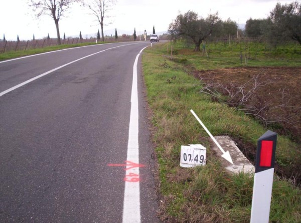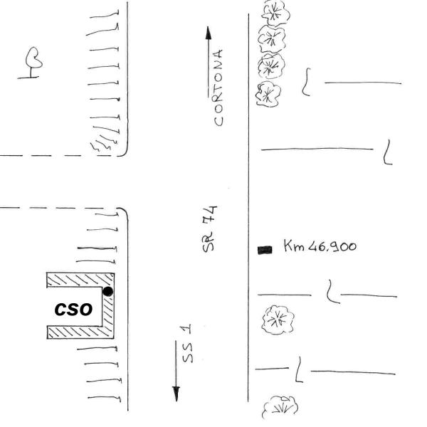 | Contrassegni | [{"simbolo_contrassegno":"B4","materializzazione":"(CSO) – Centrino universale infisso sulla sommit\u00e0 della trave di un tombino, lato strada, a destra in direzione Cortona."}] |