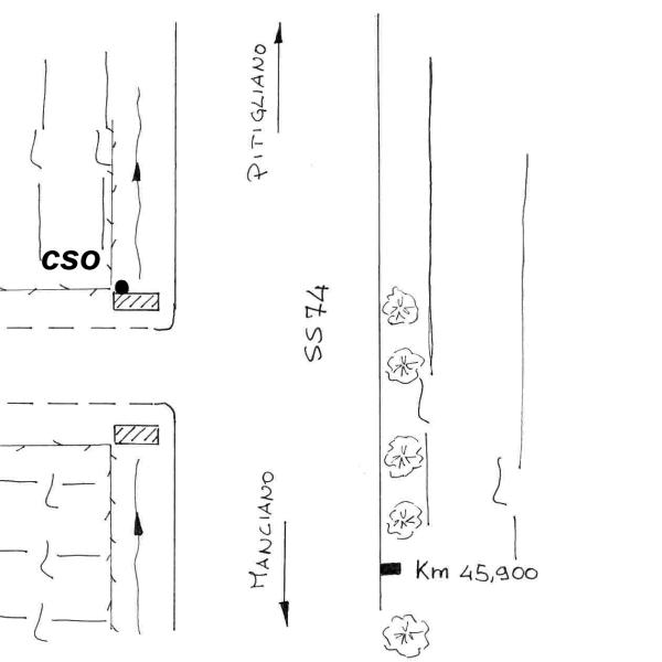 | Contrassegni | [{"simbolo_contrassegno":"B1","materializzazione":"(CSO) – Bullone infisso nella spalletta destra del ponticello di ingresso ad un podere con alcune coloniche, a destra in direzione Cortona."}] |