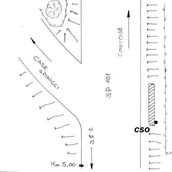 [{"simbolo_contrassegno":"B1","materializzazione":"(CSO) – Bullone infisso nella spalletta del ponticello di una canaletta raccogliacque di fronte all'ingresso al podere Case Spinicci, a destra direzione Cortona."}]