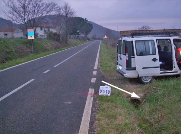 [{"simbolo_contrassegno":"B1","materializzazione":"(CSO) – Bullone infisso nella spalletta del ponticello di accesso ai campi in prossimit\u00e0 e difronte al km 7,000 a destra in direzione Cortona."}]