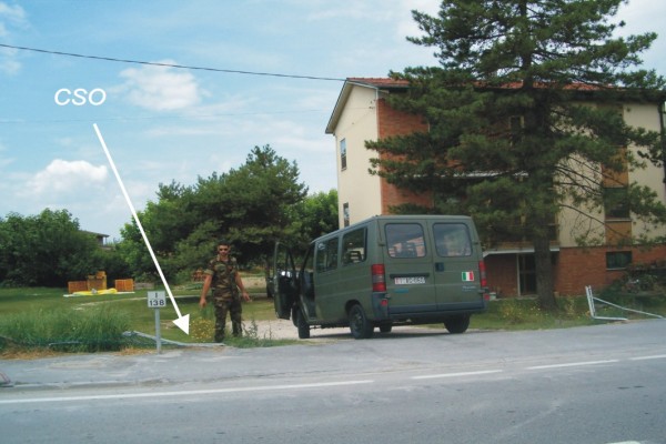 | Contrassegni | [{"simbolo_contrassegno":"B1","materializzazione":"(CSO) – Bullone ARPA infisso sul muro di recinzione, a sinistra, entrando, del passo carraio del N\u00b0 Civ.169 (ARPA N\u00b0 106140)."}] |