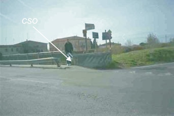 [{"simbolo_contrassegno":"B1","materializzazione":"(CSO) – Bullone IGM infisso all'estremit\u00e0 della spalletta a monte, riva sinistra (ARPA N\u00b0 106120)."}]