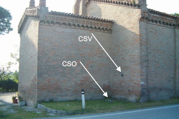 | Contrassegni | [{"simbolo_contrassegno":"P3","materializzazione":"(CSO) – Chiusino in ghisa di III\u00b0 Cat. interrato alla base della parete laterale sinistra della chiesa, nell'angolo formato con l'avancorpo (ARPA N\u00b0 113020)."},{"simbolo_contrassegno":"V2","materializzazione":"(CSV) – Piastrina a barilotto IGM infissa sulla stessa parete, in corrispondenza del CSO."}] |