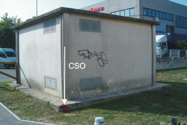| Contrassegni | [{"simbolo_contrassegno":"B1","materializzazione":"(CSO) – Bullone ARPA infisso presso lo spigolo Sud-Est del basamento in cemento armato della cabina elettrica sita dietro il fabbricato al civ. 75 (ARPA N\u00b0 124110). attualmente risulta parzialmente interrato. Riattaccato al CS 16\/009 con quota del 1999."}] |