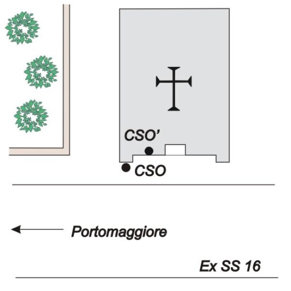 | Contrassegni | [{"simbolo_contrassegno":"P5","materializzazione":"(CSO) – Pozzetto di IV\u00b0 Cat. interrato alla base della facciata, in prossimit\u00e0 dello spigolo sinistro. Rialzato con tubo di PVC e coperchio di ghisa (ARPA N\u00b0 124030)."},{"simbolo_contrassegno":"B8","materializzazione":"(CSO') – Sommit\u00e0, al centro del bordo superiore, della piastrina N\u00b0 35 del Municipio di Rimini, infissa sul muro a sinistra della porta d'ingresso della Chiesa. Misurata con stadia e mezza sfera nel 2005 con quota ARPA del 1999."}] |