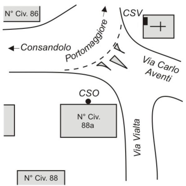 | Contrassegni | [{"simbolo_contrassegno":"P5","materializzazione":"(CSO) – Pozzetto di IV\u00b0 Cat. interato alla base della facciata volta verso la statale, quasi al centro, dell'edificio al N\u00b0 Civ. 88\/A. rialzato con tubo in PVC e coperchio in ghisa (ARPA N\u00b0 061050)."},{"simbolo_contrassegno":"V4","materializzazione":"(CSV) – Piastrina zincata del Catasto infissa sulla facciata della cappelletta posta all'incrocio fra via Carlo Aventi e la S.S. 495, a sinistra della porta d'accesso."}] |