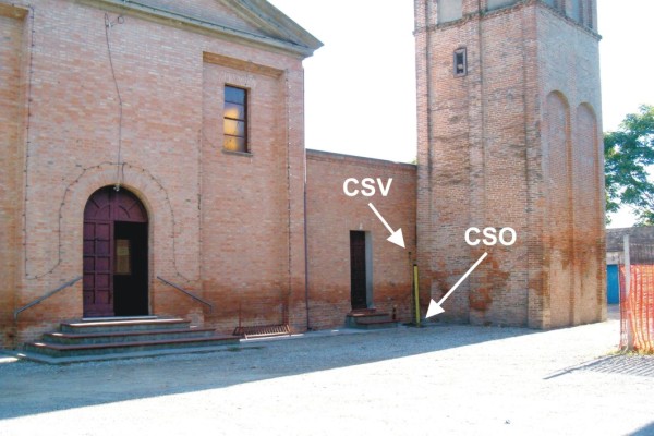 | Contrassegni | [{"simbolo_contrassegno":"P3","materializzazione":"(CSO) – Chiusino di III\u00b0 Cat. interrato nell'angolo formato dalla facciata della chiesa e dal campanile (ARPA N\u00b0 074110)."},{"simbolo_contrassegno":"V1","materializzazione":"(CSV) – Mensola IGM infissa sulla facciata della chiesa, in corrispondenza del CSO."}] |