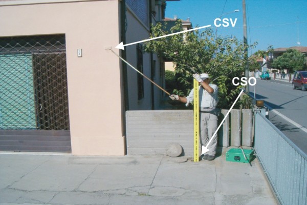| Contrassegni | [{"simbolo_contrassegno":"P3","materializzazione":"(CSO) – Chiusino in ghisa di III\u00b0 Cat. interrato alla base del muretto divisorio in cemento, a destra della facciata della casa al N\u00b0 Civ 1, protetto da coperchio tondo in cemento (ARPA N\u00b0 074010)."},{"simbolo_contrassegno":"V2","materializzazione":"(CSV) – Piastrina a barilotto IGM infissa sulla facciata della casa al N\u00b0 Civ. 1, in prossimit\u00e0 dello spigolo destro."}] |