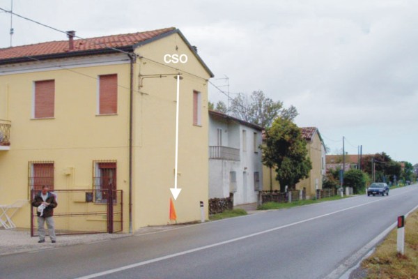 | Contrassegni | [{"simbolo_contrassegno":"P3","materializzazione":"(CSO) – Chiusino in ghisa di III\u00b0 Cat. interrato alla base della parete, lato strada dell'edificio al n\u00b0civ.277, al centro (ARPA N\u00b0092040)."},{"simbolo_contrassegno":"B2","materializzazione":"(CSO') – Chiodo anonimo di Altro Ente, infisso sul marciapiede in cemento a sinistra della porta di accesso al n\u00b0 civ. 273."},{"simbolo_contrassegno":"V4","materializzazione":"(CSV) – Piastrina del Consorzio Bonifica Bassa Ravennate N\u00b0 68, infissa sulla parete a sinistra della stessa porta, in corrispondenza del CSO'."}] |