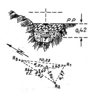 | Materializzazione | Segnale nei pressi del confine e a 2 metri ad Est del bordo della rotabile. Centrini di fondo e di superficie. Riferimenti: 4 centrini di cui uno (R4) è di "fuori centro". |