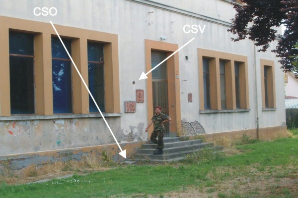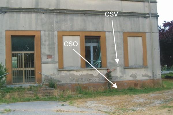 | Contrassegni | [{"simbolo_contrassegno":"P3","materializzazione":"(CSO) – Chiusino in ghisa di III\u00b0 Cat. interrato alla base della facciata principale, a sinistra della scalinata d'accesso (ARPA N\u00b0 092030)."},{"simbolo_contrassegno":"V2","materializzazione":"(CSV) – Piastrina a barilotto IGM infissa sulla stessa facciata, in corrispondenza del CSO."},{"simbolo_contrassegno":"V4","materializzazione":"(CSV') – Piastrina n\u00b0 67, anno 1969, del Consorzio di Bonifica Bassa Ravennate, infissa sulla parete laterale sinistra, al centro fra le due finestre."},{"simbolo_contrassegno":"B2","materializzazione":"(CSO') – Chiodo anonimo di Altro Ente infisso sul marciapiede al disotto del CSV'."}] |