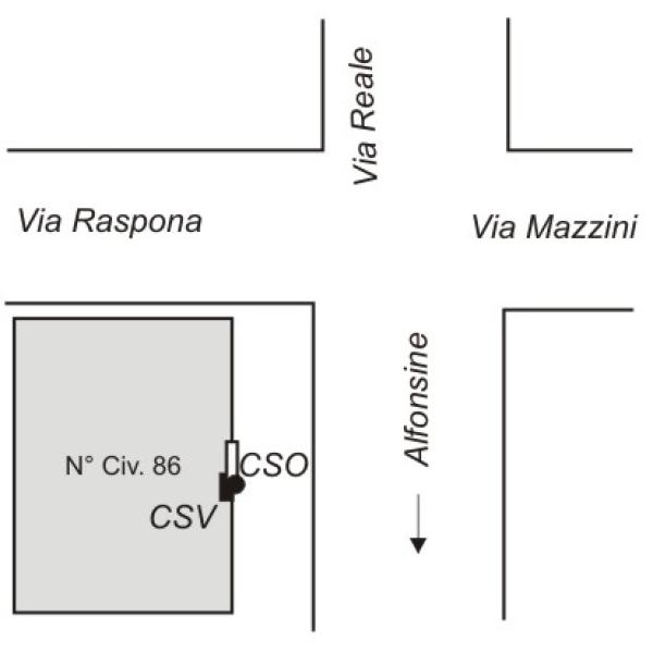 [{"simbolo_contrassegno":"B5","materializzazione":"(CSO) – Disco impiombato alla base dell'ingresso del fabbricato al N\u00b0 Civ. 86 di Via Reale, sulla sinistra entrando."},{"simbolo_contrassegno":"V3","materializzazione":"(CSV) – Piastrina in ghisa antica IGM infissa sulla facciata del fabbricato al N\u00b0 Civ. 86 di Via Reale, in corrispondenza del CSO."}]