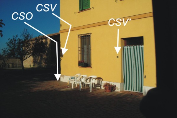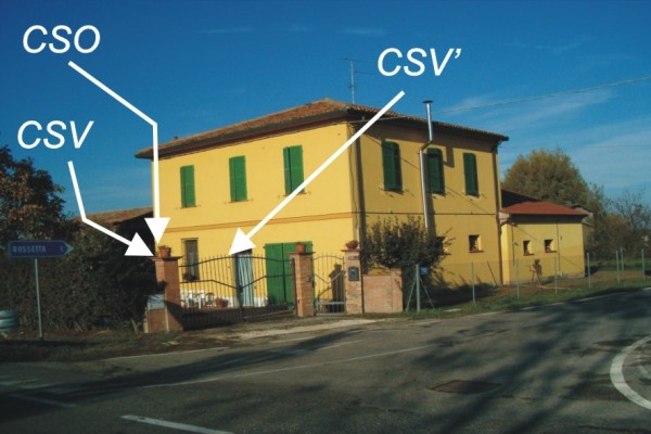 | Contrassegni | [{"simbolo_contrassegno":"P3","materializzazione":"(CSO) – Chiusino in ghisa IRTA con Alto \"A\" interrato alla base della facciata della casa al n\u00b0 civ. 177, in prossimit\u00e0 delo spigolo sinistro (ARPA N\u00b0 093130)."},{"simbolo_contrassegno":"V4","materializzazione":"(CSV) – Piastrina IRTA infissa sulla stessa facciata, in corrispondenza del CSO."},{"simbolo_contrassegno":"V4","materializzazione":"(CSV) – Piastrina del Consorzio Bonifica Bassa Pianura Ravennate, infissa sulla stessa facciata, a sinistra della porta di ingresso."}] |