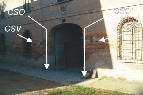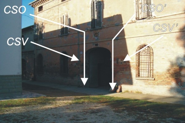 | Contrassegni | [{"simbolo_contrassegno":"B2","materializzazione":"(CSO) – Chiodo anonimo AGIP murato sul marciapiede in c.a. a sinistra della porta di accesso al N\u00b0 Civ. 169 (ARPA N\u00b0 093120)."},{"simbolo_contrassegno":"B2","materializzazione":"(CSO') – Chiodo anonimo Consorzio Bonifica Bassa Pianura Ravennate murato sul marciapiede in c.a. a destra della porta di accesso al N\u00b0 Civ. 169."},{"simbolo_contrassegno":"V4","materializzazione":"(CSV) – Piastrina IRTA infissa sulla facciata della casa, in corrispondenza del CSO."},{"simbolo_contrassegno":"V4","materializzazione":"(CSV') – Piastrina Consorzio Bonifica Bassa Pianura Ravennate infissa sulla stessa facciata, in corrispondenza del CSO'."}] |