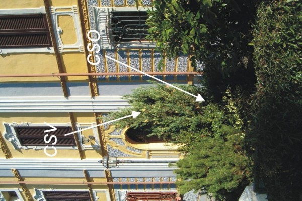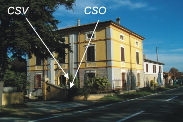 [{"simbolo_contrassegno":"P3","materializzazione":"(CSO) – Chiusino in ghisa ovale IRTA con Alto \"A\" interrato nel marciapiede in c.a. a destra della porta di ingresso alla palazzina (ARPA N\u00b0 093060). Non misurato \"A\"."},{"simbolo_contrassegno":"V4","materializzazione":"(CSV) – Piastrina IRTA infissa sulla facciata principale della palazzina, in corrispondenza del CSO. Non misurata."}]