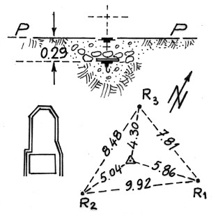| Materializzazione | Segnale sulla parte più alta del monte in prossimità di manufatti diruti. Centrino di fondo cementato su roccia e centrino di superficie in blocco di calcestruzzo affiorante a livello suolo. Riferimenti: 3 centrini metallici cementati su roccia. |
