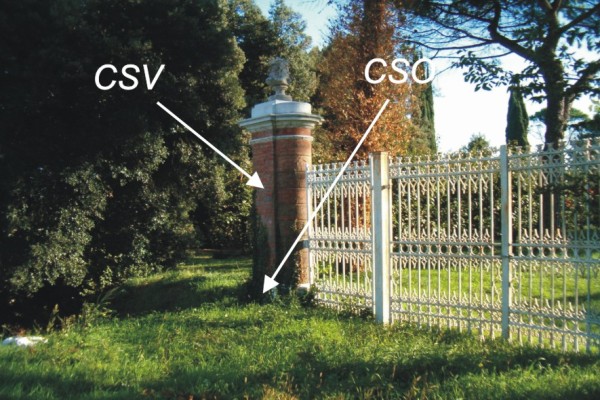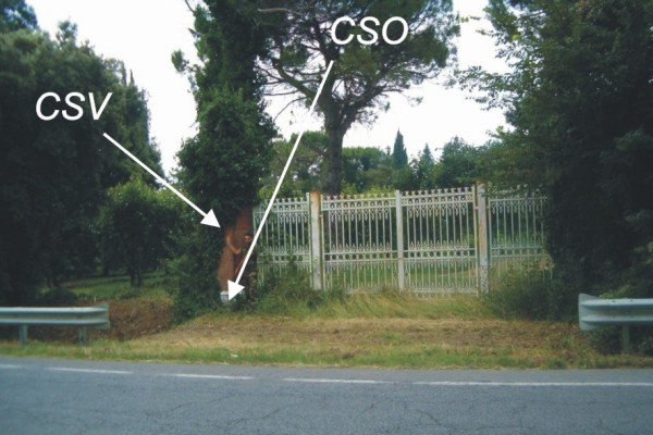 | Contrassegni | [{"simbolo_contrassegno":"B1","materializzazione":"(CSO) Bullone del Catasto infisso sul pilastro sinistro del cancello del N\u00b0 Civ 156 (ARPA N\u00b0 110050)."},{"simbolo_contrassegno":"V4","materializzazione":"(CSV) – Piastrina zincata del Catasto infissa sullo stesso pilastro, in corrispondenza del CSO."}] |