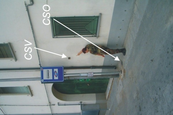 | Contrassegni | [{"simbolo_contrassegno":"P3","materializzazione":"(CSO) Chiusino in ghisa di III\u00b0 Cat. interrato presso la base del muro di facciata, a 1,35 m dallo stipite destro della porta ad arco recante il N\u00b0 Civ. 107 (ARPA N\u00b0 110060)."},{"simbolo_contrassegno":"V3","materializzazione":"(CSV) – Piastrina antica in ghisa IGM infissa sulla facciata anzidetta, in corrsipondenza del CSO."}] |