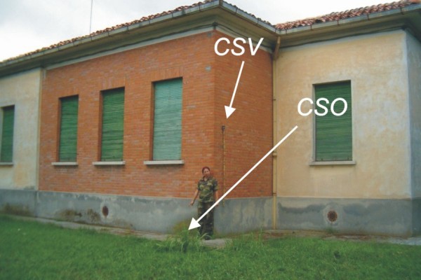 | Contrassegni | [{"simbolo_contrassegno":"P2","materializzazione":"(CSO) Chiusino in ghsa di II\u00b0 Cat. interrato alla base del muro di facciata volto alla rotabile per Corleto, in prossimit\u00e0 dello spigolo destro, prima della risega (ARPA N\u00b0 110070)."},{"simbolo_contrassegno":"V1","materializzazione":"(CSV) – Mensola IGM infissa nella parete della risega perpendicolare alla rotabile, in prossimit\u00e0 dello spigolo sinistro."}] |