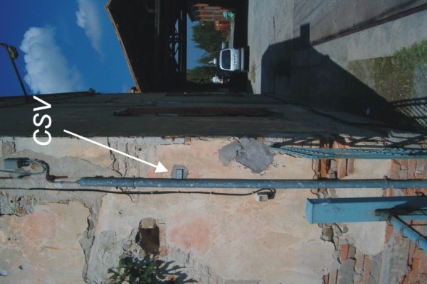| Contrassegni | [{"simbolo_contrassegno":"P5","materializzazione":"(CSO) Pozzetto di IV\u00b0 Cat. interrato a 65 cm circa,dal montante sinistro in ferro del cancelletto d'accesso al N\u00b0 Civ. 36. Rialzato con tubo in PVC e coperchio in ghisa (ARPA N\u00b0 115130)."},{"simbolo_contrassegno":"V4","materializzazione":"(CSV) – Piastrina zincata del Catasto infissa sulla facciata del primo edificio, in prossimit\u00e0 dello spigolo destro."}] |