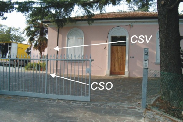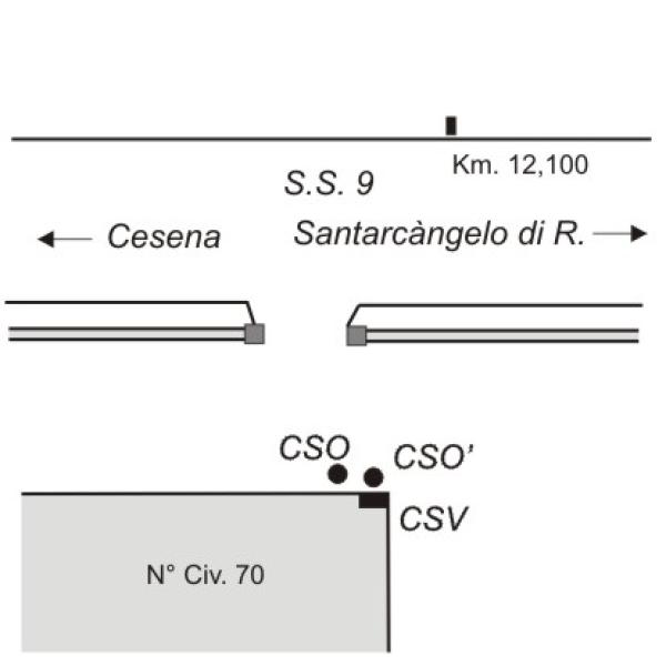 | Contrassegni | [{"simbolo_contrassegno":"B2","materializzazione":"(CSO) Chiodo anonimo ARPA infisso nella pavimentazione, in prossimit\u00e0 del pozzetto del CSO' (ARPA N\u00b0 120030)."},{"simbolo_contrassegno":"V4","materializzazione":"(CSV) – Piastrina zincata del Catasto infissa sulla facciata della casa, in corrispondenza del CSO."},{"simbolo_contrassegno":"P5","materializzazione":"(CSO') – Pozzetto di IV\u00b0 Cat. interrato alla base dello spigolo sinistro del muro di facciata. Rialzato con tubo in PVC e protetto con mattonella in porfido."}] |