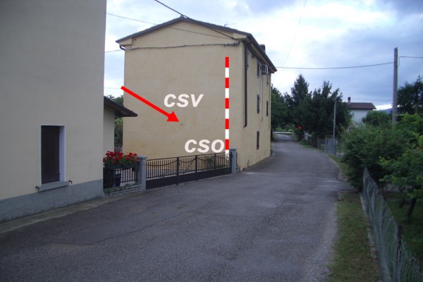 | Contrassegni | [{"simbolo_contrassegno":"P5","materializzazione":"(CSO) – Pozzetto rialzato con tubo in plastica e tappo in ghisa interrato alla base della facciata verso la S.S.51 dell'edificio di destra entrando al civico n\u00b022 di via Cal de l'Oca spigolo destro."},{"simbolo_contrassegno":"V4","materializzazione":"(CSV) – Piastrina del Catasto infissa al centro della facciata verso la S.S.51 dell'edificio di destra entrando al civico n\u00b022 di via Cal de l'Oca."}] |