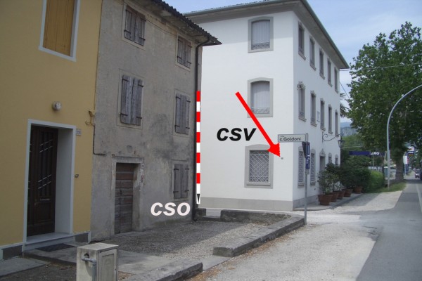 | Contrassegni | [{"simbolo_contrassegno":"B1","materializzazione":"(CSO) – Bullone infisso sulla facciata del civico n\u00b0 235 presso lo spigolo destro in angolo con via Goldoni."},{"simbolo_contrassegno":"V4","materializzazione":"(CSV) – Piastrina del Catasto infissa sulla facciata volta a via Goldoni presso lo spigolo destro della casa al civico n\u00b0237."}] |