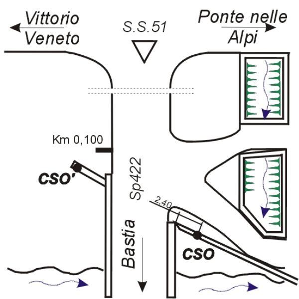 [{"simbolo_contrassegno":"B4","materializzazione":"(CSO) – Centrino universale infisso sulla sommit\u00e0 del muro d'argine riva destra a monte del ponte."},{"simbolo_contrassegno":"B2","materializzazione":"(CSO') – Chiodo di un altro ente (A.E.) infisso sulla sommit\u00e0 di un muretto in c.a. lato a valle,riva destra,adiacente al ponte."}]